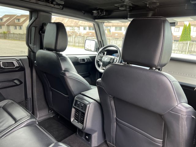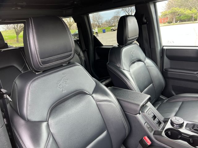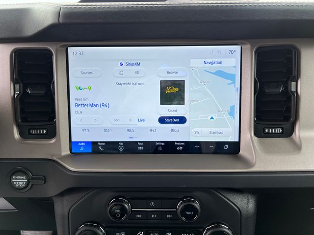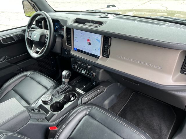 Inside, the Bronco Outer Banks offers a premium and well-equipped cabin, with features like Connected Navigation, SYNC 4, and a Heated Leather-Trimmed/Vinyl Bucket Seats. The 7-speaker audio system and SiriusXM with 360L ensure you'll enjoy your favorite tunes on the road.